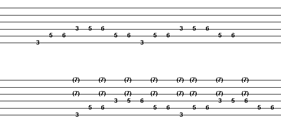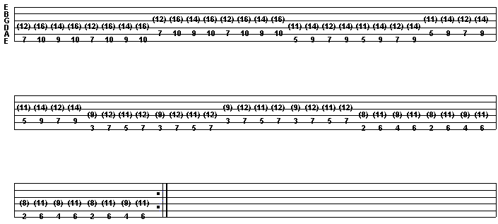 1. Oefening 1 is een vingeroefening. Het spelen van een toonladder over de hals met de rechterhand, gebruikmakend van vier vingers.