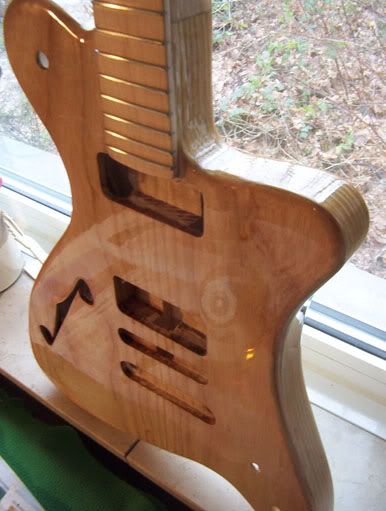 Body net voor de eerste keer in de olie gezet: nice 'n shiny, maar dat mindert natuurlijk als de olie is ingetrokken. Ben wel tevreden omdat ik voor deerste keer een hard ash body biljartvlak heb gekregen met poriënvullers maar vooral veel schuren.