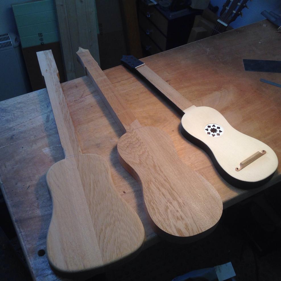 Twee nieuwe renaissancegitaartjes, ditmaal full-scale. De linker naar een schilderij van Pieter Bruegel de Oude (1559), de rechter naar Guillaume Morlaye (1552).