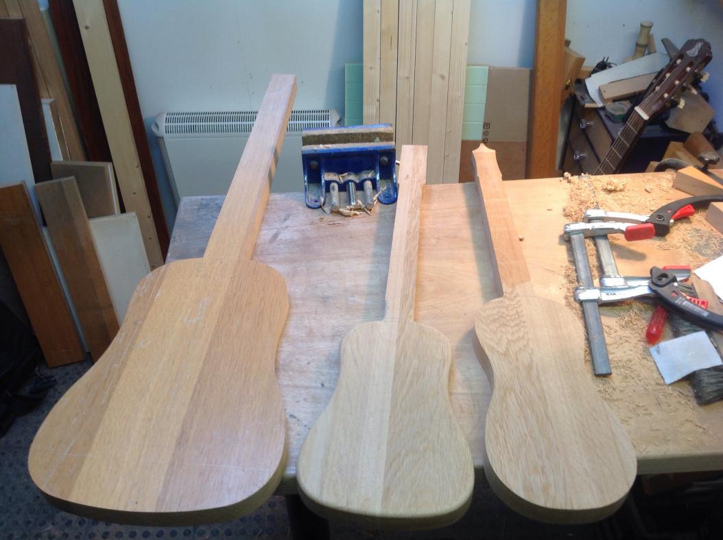 Deze serie instrumenten is gebouwd uit resten van een eiken tafelblad wat in een kerk in Utrecht overbleef. Er zijn geen eiken instrumenten gebouwd, maar eiken was in de Nederlanden van de late middeleeuwen en renaissance "the wood of choice" voor vele meubels, kerkbanken, deuren, gebouwen, kandelaars, heiligenbeelden. etc.