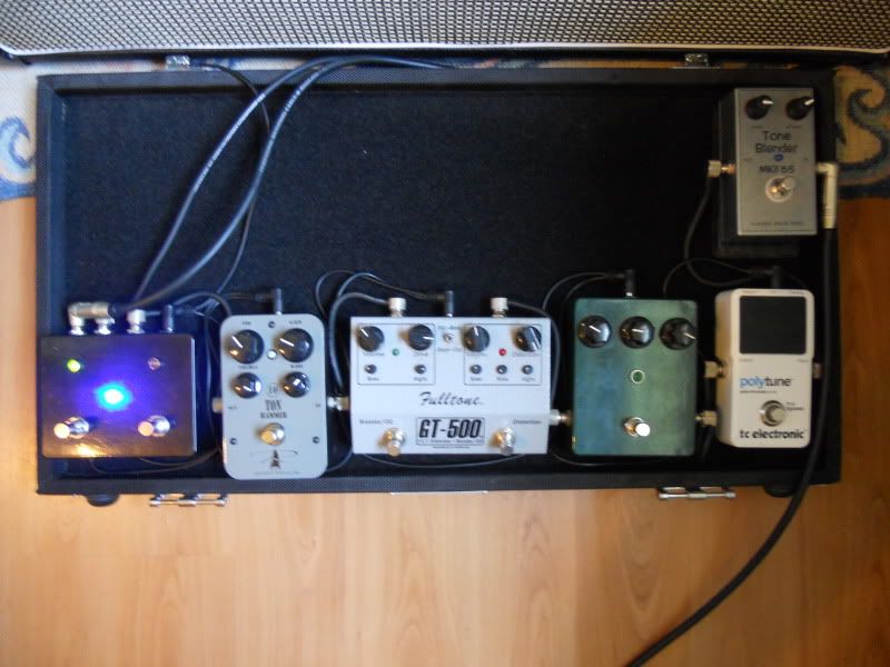 Wordt nog een hoop tweaken. De Rat klinkt op deze versterker compleet anders dan op m'n vorige versterker, veel meer gecompressed, plus dat ie veel zachter is dan m'n eigen lead kanaal. Probleem is, als ik het volume van de Rat omhoog slinger, dan gaat ie weer meer compressen. Niks mis met een beetje compressie, maar de boel wordt wel heel erg plat zo.