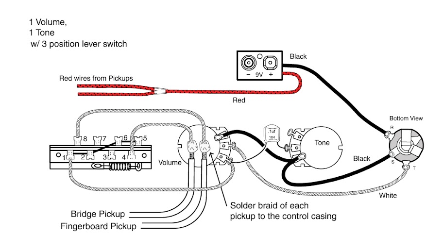 Gek genoeg, hoor je het verschil van de tone knop pas goed, als je de volume pot iets meer dicht draait.
