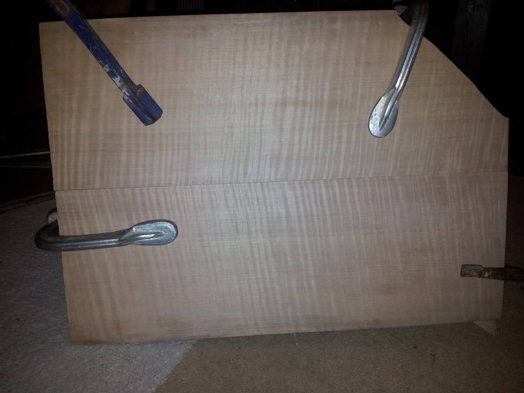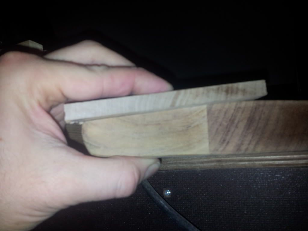 Daar staat nauwelijks druk op, is alleen voor de plaatsing. Geen afdrukken. Het resthout ligt al klaar voor het verlijmen, dan draai ik ze flink aan! Ik zal ze nog ns samen over de schuurplaat halen!