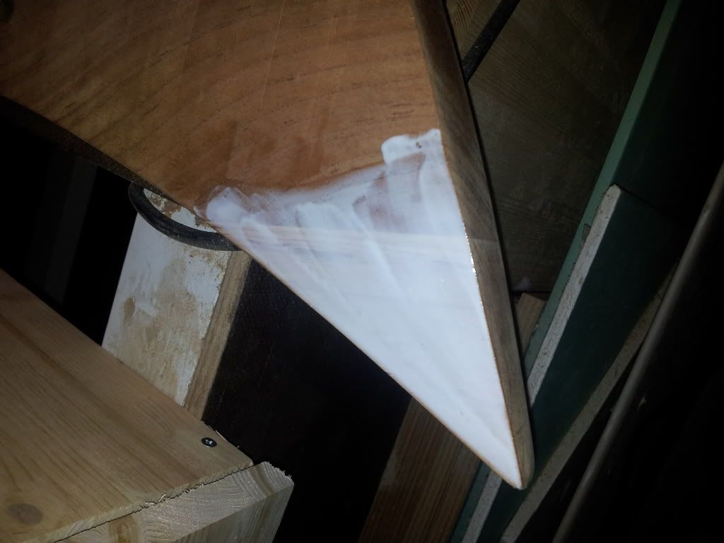 als de body gevlakt is kan ik gelijk beginnen met de top grof in vorm zagen en erop verlijmen..