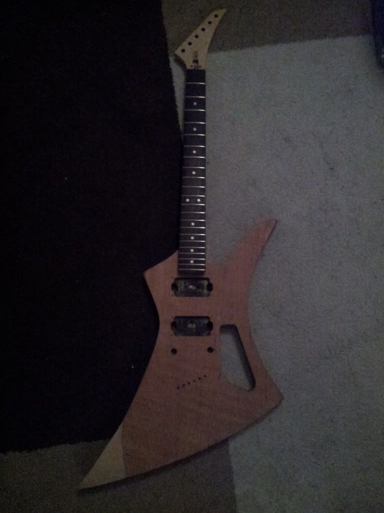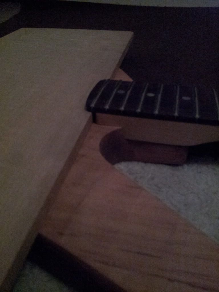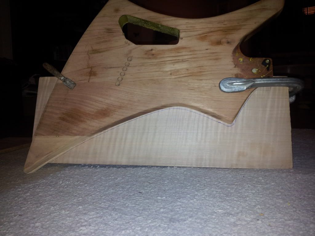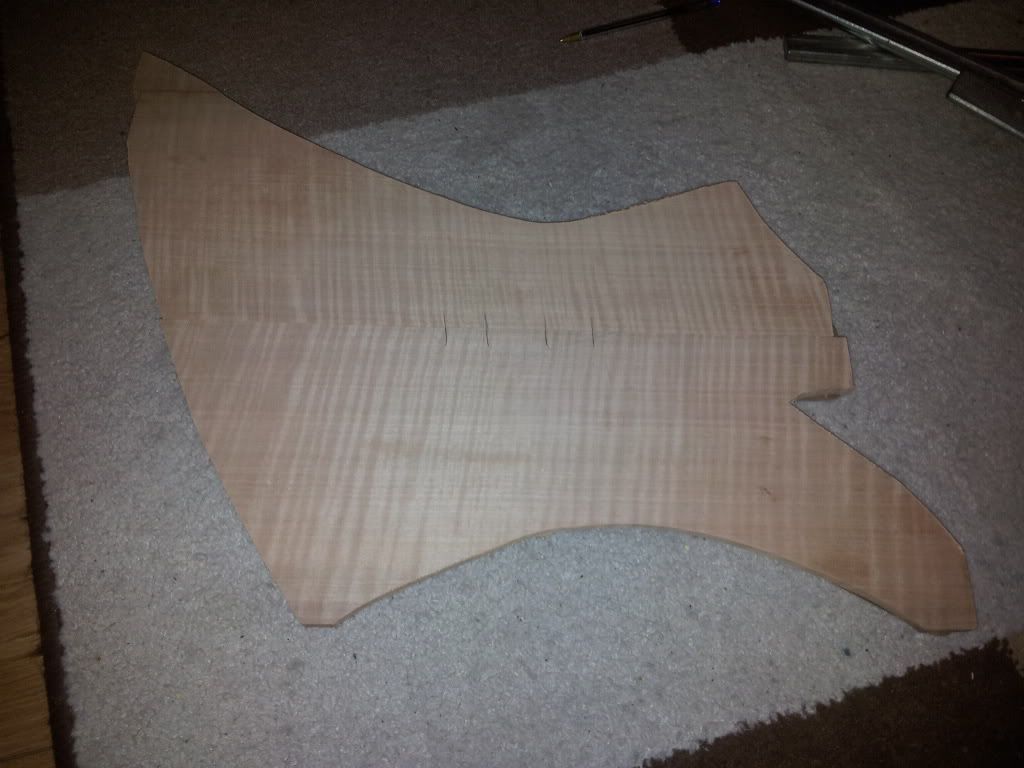 hulpje zodat ik weet waar ik straks moet boren.. de gaten voor de studs moeten zowiezo wat verder geplaatst worden omdat het niet de originele neck is, en dus met een andere lengte..