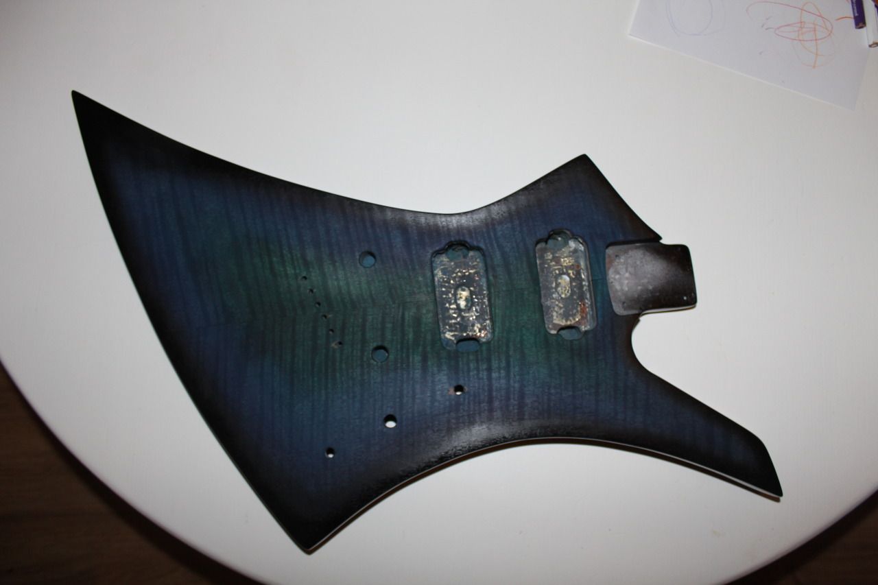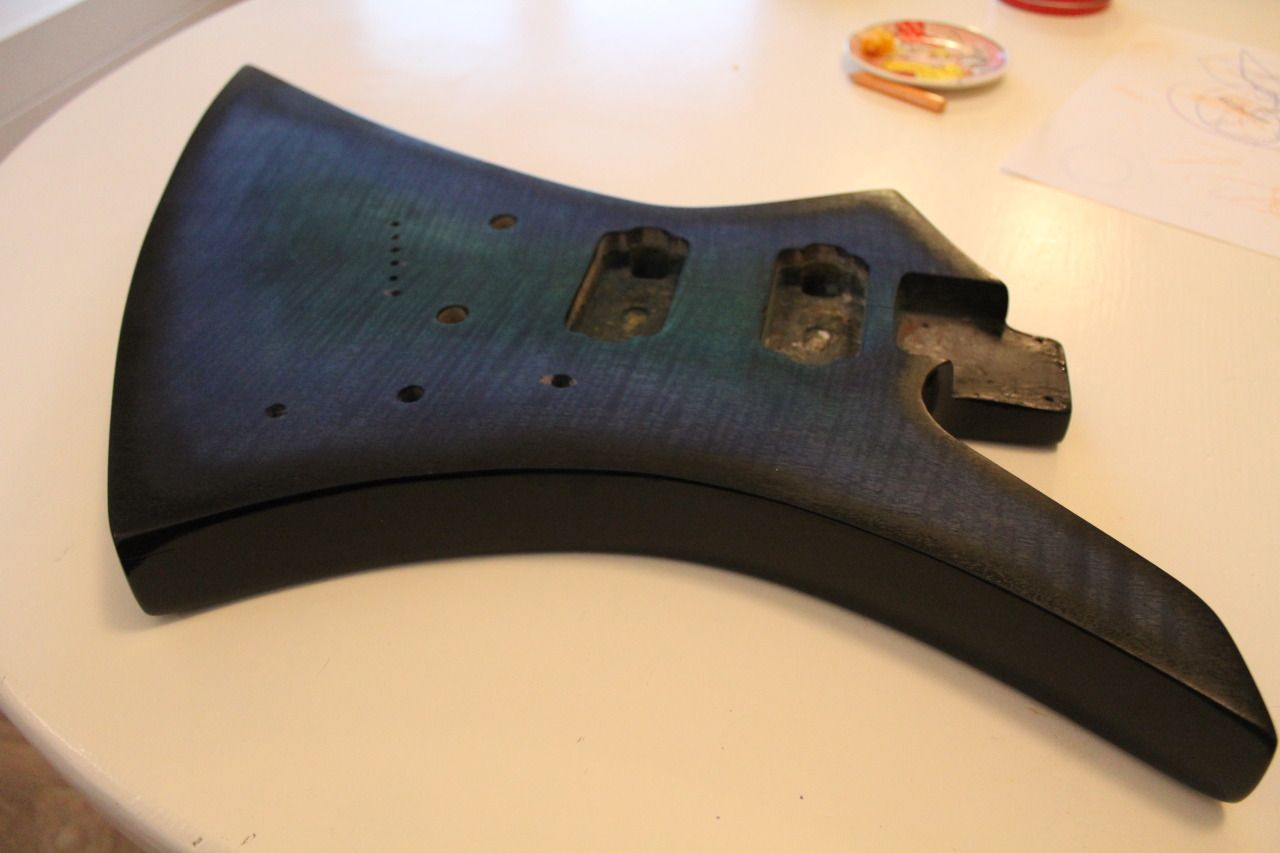 ik moet de echte burst-rand nog spuiten, maar ik kan er ook voor kiezen om alleen de rand strak zwart te spuiten daar waar de stain niet pakt (rondom 1 mm dus) waar de filler in is doorgedrongen.