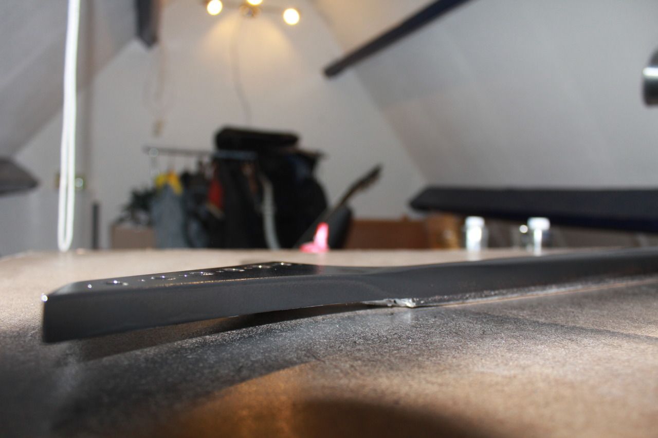 En door! :-) bij thuiskomst gelijk de hals licht geschuurd, straks afplakken en zwart spuiten.. hij heeft alleen heeel kleine side-dots, hoe plak ik die in godsnaam af??