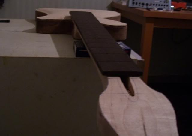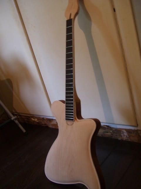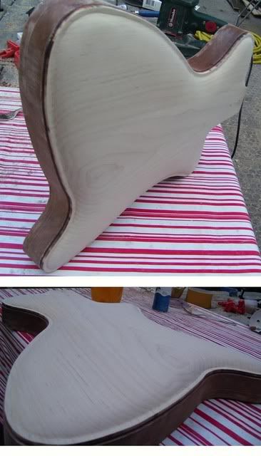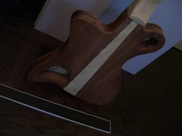 at kakihara: andersom is waarschijnlijk handiger, toch als je een perfect plan hebt met maten van neck en pup cavities en plaatsing brug enz... heb ik niet, en ik had nog nooit gecarved en geen voorbeeld in huis, dus wilde eerst zien hoe dat uitpakt voor ik rest doe.