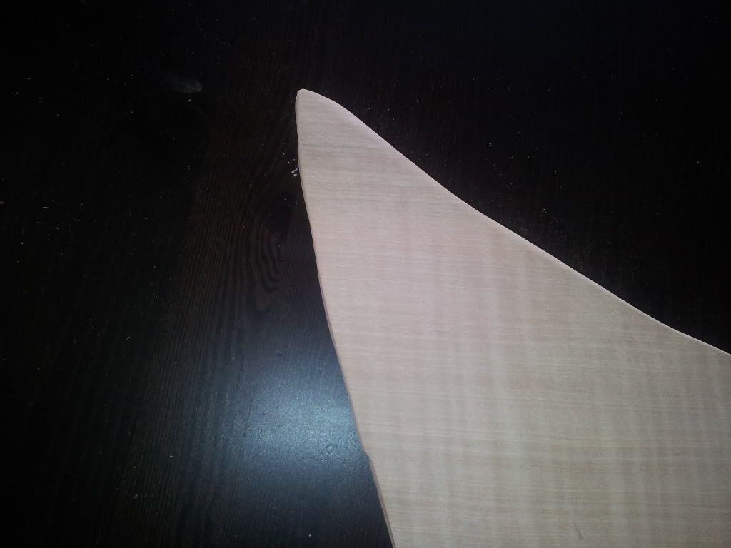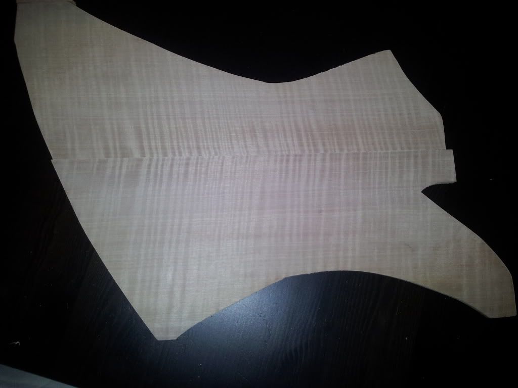 ik zou de kop niet bookmatchen, ik geloof dat ik het mooi vind als de spiegel in het hout de zelfde richting heeft als de onderzijde van de body, het deel met de potmeters.
