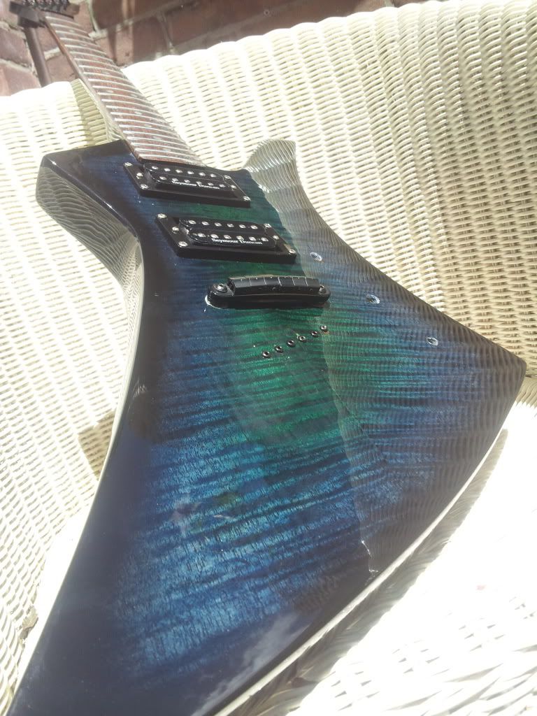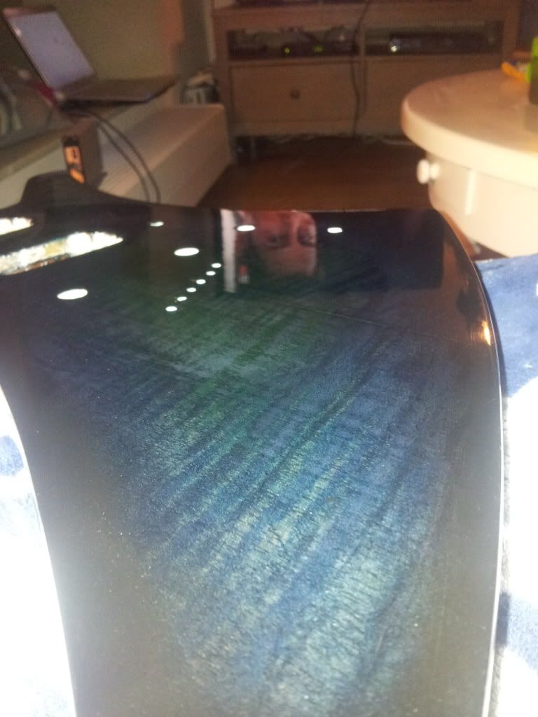 Verder ben ik tot de ontdekking gekomen dat de passing van de neck in de pocket wel HEEL strak is. zo erg dat er een klein beetje lak van de pocketrand is gesprongen bij het weer verwijderen van de neck. ding zit echt KLEM.
