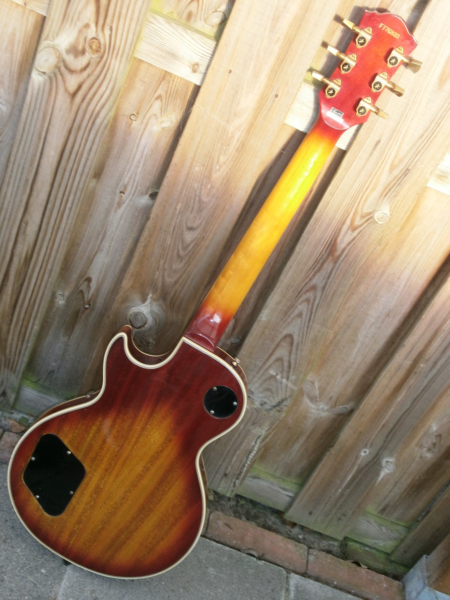 Die helmboer vroeg 525 voor het hele gebeuren met als kanttekening dat de gitaar volledig kaal moet worden aangeleverd. Omdat ik zelf niet zo'n klusser ben komen daar dus nog wat kosten voorbij. Schuren kan ik zelf wel, maar solderen en afstellen zou ik laten doen.