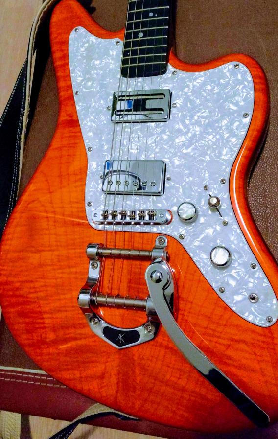 Heeft inmiddels een Bigsby en Custom made plaatje over de brug studs. Is vrees ik binnen een paar jaartjes aan een refret toe en stiekem wil ik een setje Antiquities of vergelijkbaar....