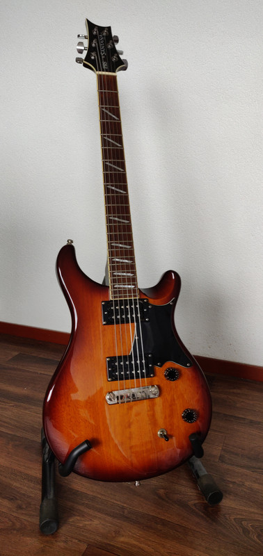 Ik was al langer aan het zoeken naar iets wat meer richting Les Paul klinkt, zonder er een te zijn. Ik kan het namelijk met dat model totaal niet eens worden: de mensuur is te kort, ze zijn te zwaar, de hals is meestal te dun en/of te smal, de pickup switch zit niet op de goeie plek etc etc. Gewoon niet mijn ding. Wat dat betreft zit deze een stuk meer in mijn straatje, ben er blij mee!